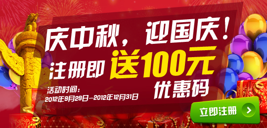为了感谢广大用户的支持,在中秋、国庆双节来临之际。建站大师特别推出“新会员注册即送100元优惠码”活动,2012年9月29日-2012年12月31日期间,凡注册成为建站大师会员的用户,均可获得价值100元的优惠码。大家赶紧来领啦!